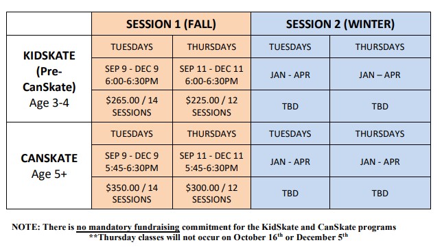**CSA approved helmets are required for CanSkate and KidSkate Programs.